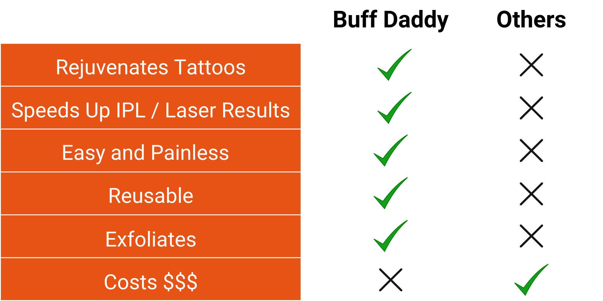 Buff Daddy utilizes the highest-grade Nano-Crystalline Technology. It works by causing the hair to clump and break from the surface when rubbed gently on the skin.